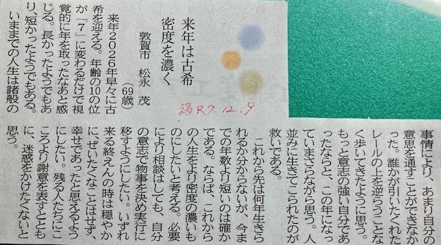 ――――――――――――――― 「来年は古希 密度を濃く」 Mさん(69歳)