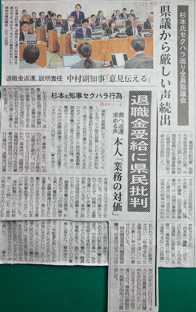 女性職員へのセクハラ事件で辞職した、杉本元福井県知事が6,162万円もの退職金を受け取ったことに、批判が集中している。