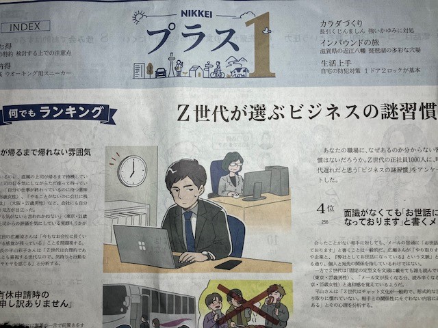 『日本経済新聞2026.2.28』土曜日版「NIKKEIプラス1」がなかなか良かった。 トップページの「何でもランキング」だ。 テーマが「Z世代が選ぶビジネスの謎習慣」とある。